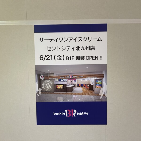 セントシティに「サーティーワンアイスクリーム セントシティ北九州店」がオープンします。 開店日は6月21日で、場所は地下1階にあ...