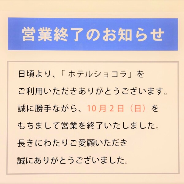 「アミュプラザ小倉」(北九州市小倉北区浅野1-1-1)の東館3階にあった「ホテルショコラ」が10月2日をもって営業を終了したとい...