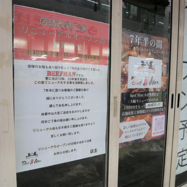 開店から約7年半にわたり、小倉の肉好きを楽しませてきた「肉焼きワイン酒場 Beef Man 小倉魚町店」(北九州市小倉北区魚町2...